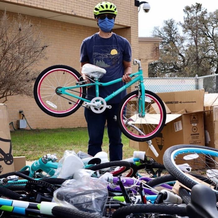 Bonus shoutouts to Sunday Bikes for donating the BMX youth bikes to a participating Middle School, Longhorn Car and Truck Rentals for the trucks to help us haul the gear all over town, and Major Taylor Cycling Club of Austin for helping us get the last 20 bikes built up at our build party at the ABGB.
