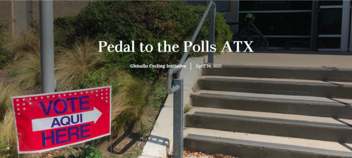During early voting weeks and leading up to election day on May 1st, we released our Pedal to the Polls guide to share voting information and encourage people to ride their bikes to vote. Check it out at http://pedaltothepolls.citycyclist.org/.