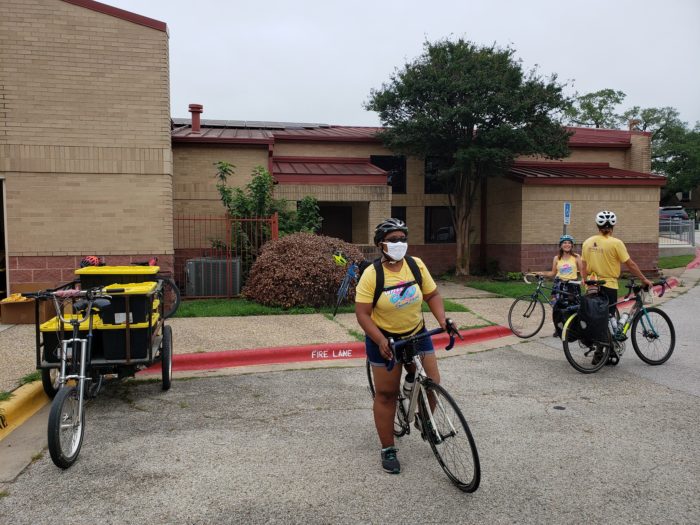Each week during Bike Month, our incredible volunteers and staff have been delivering over 270 Wheelie Good Snack Packs and 20 fresh Urban Roots farm shares to families in East Austin – all by bike! The exchange of friendly hellos and healthy snacks outside doorsteps has been bringing smiles to both the kids and adults.