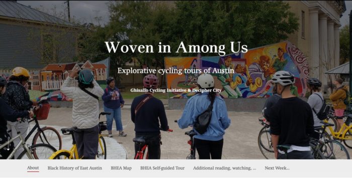 Ghisallo and Decipher City worked together to relaunch their collaborative “Woven in Among Us” series as fully self-guided biking or walking tours. The Black History of East Austin tour is available at http://woven.ghisallo.org/black-history-of-east-austin, and we’ll be posting the Chicano History Tour and Black Architect Tour in the next week.
