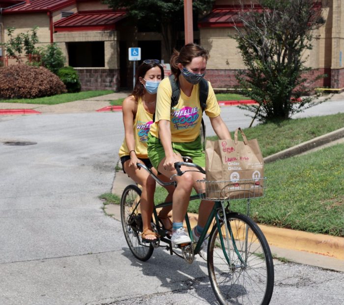 Each week during Bike Month, our incredible volunteers and staff have been delivering over 270 Wheelie Good Snack Packs and 20 fresh Urban Roots farm shares to families in East Austin – all by bike! The exchange of friendly hellos and healthy snacks outside doorsteps has been bringing smiles to both the kids and adults.
